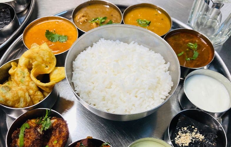 Diners ordering the vegetarian Sapaad can enjoy two starters and three main dishes – a choice of a Poriyal vegetable stew, or Pachadi fresh pickle, a Kozhambu curry and a Kootu curry – for £15.99.