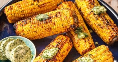 Barbecued corn cobs with shallot butter Print Serves: 6 Ingredients 100g butter, softened 2 shallots, finely grated 20g fresh mixed parsley, chives, rosemary salt and freshly ground black pepper 6 corn on the cob Method Put the butter in a bowl, stir through the shallots and herbs and season well with salt and pepper. Rub butter all over each corn cob and barbecue for about 15 mins, turning frequently, until lightly charred. Serve immediately with more of the butter. … Continue reading Barbecued corn cobs with shallot butter