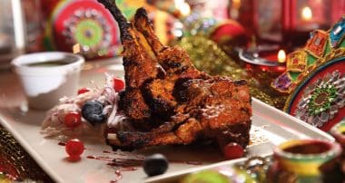 Barrah Boti Shahlik Print Author: Dabbawal Serves: 1 Ingredients 180g/3 lamb chops 1 tbsp ginger-garlic paste 3 tbsp yoghurt 1 tbsp garam masala 1 tbsp red chilli powder ½ tbsp paprika ½ tsp cumin powder ½ tsp crushed roasted cumin ½ tsp coriander powder 1 green pepper 1 red pepper 2-3 tbsp mustard oil salt to taste Method Rub the ginger-garlic paste over the lamp chops and leave to one side. To create the marinade, add all the spice … Continue reading Barrah Boti Shahlik