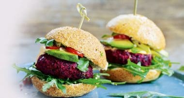 Beetroot burgers with guacamole Print Serves: 4 Ingredients 1 tbsp olive oil 1 red onion, finely chopped 1 tsp fennel seeds 2 garlic cloves, crushed 200g cooked quinoa 200g cooked beetroot, peeled, finely grated or very finely chopped and drained 50g plain flour 2 tbsp milled flaxseed ½ small bunch coriander (+ more to garnish) For the guacamole (optional): 1 avocado, peeled and cubed 1 tbsp chopped parsley 2 tbsp lemon juice 1 garlic clove, minced ½ tsp hot … Continue reading Beetroot burgers with guacamole