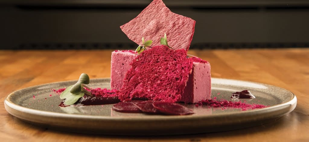 Beetroot semifreddo Print Ingredients 200g cooked beetroot, puréed 250g cream cheese 4 eggs 100g caster sugar 100ml double cream Method Mix together beetroot purée, cream cheese, egg yolks, sugar and cream. Whip egg whites until they form peaks and fold into beetroot mix. Pour into a 500g loaf tin lined with clingfilm and freeze overnight. 3.5.3208