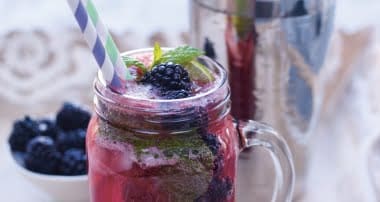 Blackberry mint mojito Print Serves: 2 Ingredients 20 blackberries 160ml water 4tsp sugar 12 whole mint leaves plus extra to serve juice of one lime 100ml white rum ice, for shaking splash of soda water Method Put the blackberries, water, sugar, mint and lime in a cocktail shaker and mash with the end of a rolling pin. Add the rum and some ice and shake well. Put the extra mint leaves and some ice into a glass and sieve … Continue reading Blackberry mint mojito
