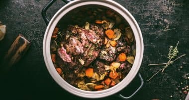 Burgundy pot roast Print Ingredients 1.5kg topside of beef salt and freshly ground black pepper 25g butter 1 onion, sliced 2 carrots, sliced 2 sticks celery, chopped 1 clove garlic crushed 150ml Burgundy 150ml beef stock bouquet garni 1 bay leaf Method Preheat oven to 160C/Gas 3. Season the joint well with salt and pepper. Heat butter in a flame-proof casserole dish and sear the meat on all sides. Remove meat and set aside. Add onion, carrots, celery and … Continue reading Burgundy pot roast