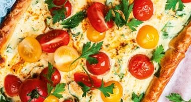 Cherry tomato, watercress and mozzarella puff pastry tart