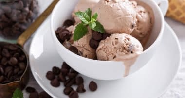 Coffee ice cream Print Ingredients 400ml condensed milk 600ml double cream 2 tsp instant espresso powder Method Put the milk, cream and espresso powder in a bowl and whisk until thick and stiff. Pour into a freezer tub and freeze 3 hours minimum. Serve sprinkled with chopped nuts or chocolate coffee beans and mint leaves. 3.5.3208