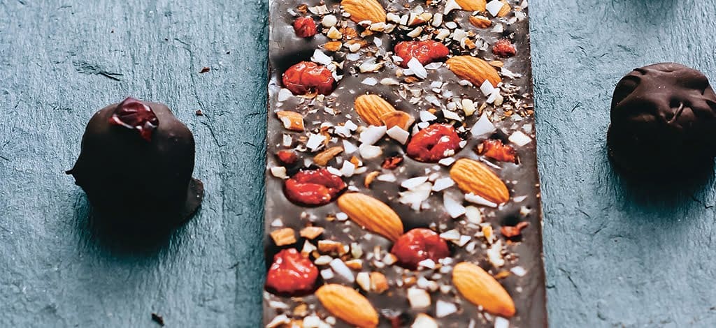 Cranberry nut chocolate Print Ingredients 85g chopped almonds + smalll handful whole almonds 85g chopped hazelnuts + small handful chopped hazelnuts 85g dried cranberries, chopped + small handful dried cranberries 85g desiccated coconut 500g dark chocolate, chopped Method Spread chopped nuts on a baking tray and toast under a grill for 5 mins. Set aside. Line a baking tin with parchment. Melt chocolate in a bowl over a pan over simmering water (don’t let the touch the bottom of … Continue reading Cranberry nut chocolate