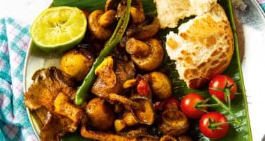 Garlic chilli mushrooms Print Author: Dabbawal Serves: 2 Ingredients 2 tbsp olive oil 2 shallots or ½ onion, sliced thinly ½ banana chilli, sliced, or ½ tsp chilli flakes 150g cremini/Swiss brown mushrooms, sliced 200g oyster mushrooms, halved or cut into thirds depending on size 20g butter 1 tsp grated lemon zest 100g enoki mushrooms 3 cloves garlic, sliced 1 tsp sea salt 2 tbsp lemon juice Method Preheat a large frying pan over a high heat (it’s important … Continue reading Garlic chilli mushrooms
