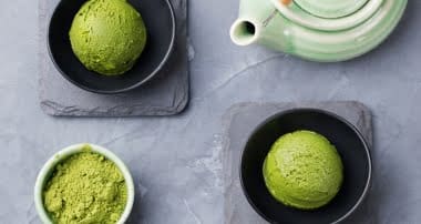 Green tea ice cream Print Ingredients 300ml whipping cream 4 tbsp condensed milk 1 tsp vanilla extract 4 tsp green tea powder (matcha) Method Mix 2 tsp green tea powder with 3 tbsp hot water and leave to cool. Whip the cream until stiff peaks appear. Mix the tea mixture with the condensed milk and vanilla extract and fold into the whipped cream. Freeze 3 hours. Serve with a sprinkle of Digestive biscuit crumbs. 3.5.3208