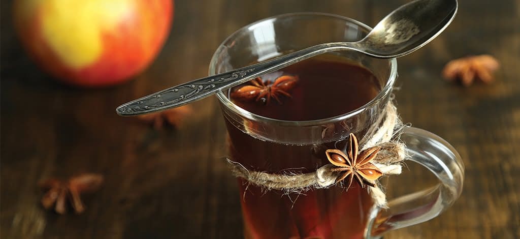 Hot mulled cider Print Serves: 8 Ingredients 2 litres apple cider 2 cinnamon sticks 1 tsp allspice berries 4 whole cloves 4 star anise 1 orange, thinly sliced zest of ½ lemon in thin strips 50g dark brown sugar Method Heat all ingredients in a large pan over a low heat. Serve in glass mugs. 3.5.3208
