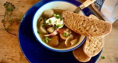 Hungarian Mushroom Soup Print Author: Jane Pikett Serves: 4 Ingredients 4 tbsp butter 8-10 whole shallots, peeled 500g mushrooms (any type) chopped 500ml mushroom or vegetable stock 100ml white wine 2 tsp dried dill 2 tsp dried thyme 2 tsp paprika 3 tbsp soy sauce 200ml milk 2 tbsp flour 50ml sour cream + more to garnish 2 tbsp lemon juice 2 tbsp fresh parsley Method Melt butter in a large, heavy based saucepan, add onions and saute gently … Continue reading Hungarian mushroom soup