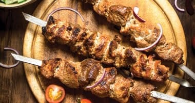 Lamb skewers with artichokes Print Serves: 6-8 Ingredients 1kg boneless lamb, cut into 1-inch chunks 4 cloves garlic, finely chopped 1 bunch fresh mint, coarsely chopped 1 bunch fresh parsley, coarsely chopped ½ cup extra virgin olive oil sea salt + freshly ground black pepper zest and juice of 1 lemon 2 lemons, thinly sliced 2 baby artichokes, cut into quarters Method Combine the lamb, chopped garlic, mint, parsley, olive oil, pepper, and lemon zest in a shallow bowl. … Continue reading Lamb skewers with artichokes