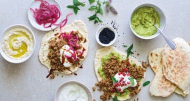 Lebanese-style spicy lamb flatbreads Print GET AHEAD Cook the mince mixture up to 3 days in advance, then cool, cover and chill. Reheat in the frying pan on a low heat until hot throughout. TIPS Add a pinch of chilli powder or dried chilli flakes if you prefer the lamb spicier. A little ground cumin added to taste at the same time as the harissa paste is good, too. Author: Jane Lovett Serves: 4-6 Ingredients 2 tbsp pine nuts … Continue reading Lebanese-style spicy lamb flatbreads
