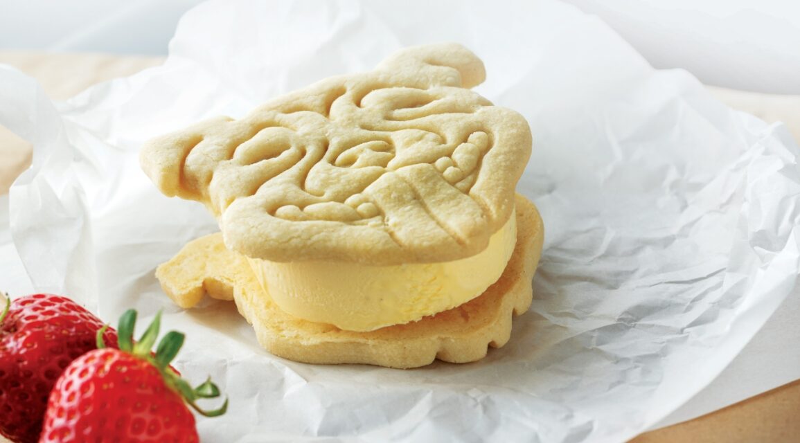 - When you’re ready, slice the ice cream, place between two wafers or biscuits, and enjoy on the back step (or in a chair if you’re a proper grown up).