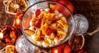 Plum and ginger trifle Print Author: Paul Johnson Serves: 4 Ingredients Ginger sponge: 225g butter 225g soft brown sugar 225g black treacle 2 eggs 350g plain flour 2 tsp ground ginger 1 tsp cinnamon pinch salt 300ml milk 2 tsp bicarbonate of soda Roast plums: 6 plums, halved and stoned 50g demerara sugar 50g honey Plum jelly: liquor from the roast plums 4 plums, blitzed to a purée 50g caster sugar 4 sheets gelatine Ginger custard: 200g milk 400g … Continue reading Plum and ginger trifle