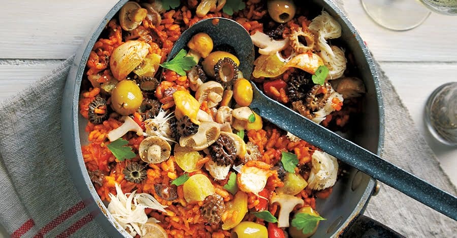 Portuguese wild mushroom risottoe Print A Portuguese risotto is a cross between a paella and a risotto, with sharp olives and preserved lemons giving a tart contrast. Portugal has a long history of using wild mushrooms in cooking, as well as commercial foraging. You can use any kind of mushroom in this risotto – add the more delicate ones towards the end and the sturdier mushrooms at the beginning. We have added some cultivated pom pom and horse mushrooms … Continue reading Portuguese wild mushroom risotto