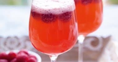 Raspberry spritz Print Author: www.berryworld.com Serves: 2 Ingredients 20 raspberries 80ml water 2 tsp caster sugar 4 mint leaves 100ml white vermouth 150ml prosecco 50ml soda water raspberries and mint to garnish Method Mash raspberries, water, sugar and mint in a cocktail shaker. Put ice cubes and a few raspberries in large wine glasses and pour mixture over through a sieve. Add the alcohol top with soda and stir. 3.5.3208
