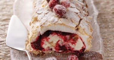 Cranberry meringue roulade with Cointreau orange cream