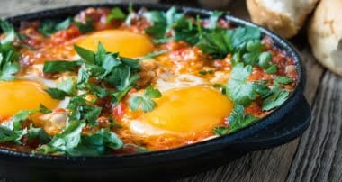 Shakshouka Print Serves: 4 Ingredients 3 tbsp olive oil 1 large onion, thinly sliced 1 red pepper, finely chopped 1 tsp red bell pepper flakes 1 small red chili, de-seeded, sliced salt and pepper 3 cloves garlic, finely chopped 1 tsp ground cumin 1 tsp cayenne pepper 1 tsp smoked paprika 1 400g tin chopped tomatoes 4 very ripe tomatoes, chopped 1 tbsp tomato or red pepper purée pinch sugar (optional) small handful fresh spinach leaves 1 small bunch fresh coriander, torn … Continue reading Shakshouka