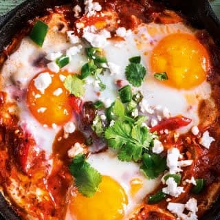 - Remove from oven, top with crumbled feta, fresh coriander leaves, and more red pepper flakes if desired.