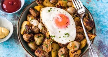 Shallot, potato and sausage hash with a fried egg Print Author: ukshallot.com Serves: 4 Ingredients 500g potatoes, peeled and cubed 2tbsp olive oil 200g round shallots, peeled and quartered 6 good quality sausages 1 tsp chilli flakes small handful flat leaf parsley Salt and pepper eggs, we like Clarence Court knob of butter ketchup and mustard Method Parboil the potatoes until they are almost cooked through, drain and set to one side. While the potatoes are cooking, heat the … Continue reading Shallot, potato and sausage hash with a fried egg