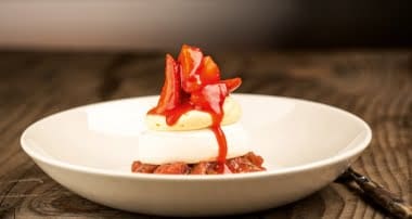 Strawberry pavlova Print Author: Helen Doyle Serves: 12 Ingredients For the pavlova: 180g egg white 360g caster sugar 30g cornflour 10g white wine vinegar For the poached rhubarb: 500g English rhubarb 100g Demerara sugar For the strawberries: 525g strawberries 75g caster sugar For the pastry cream: 225ml whole milk 1 vanilla pod 54g egg yolk 45g caster sugar 12g plain flour 9g cornflour 29g butter Method For the pavlova, in a food mixer, whisk egg whites to a stiff … Continue reading Strawberry pavlova