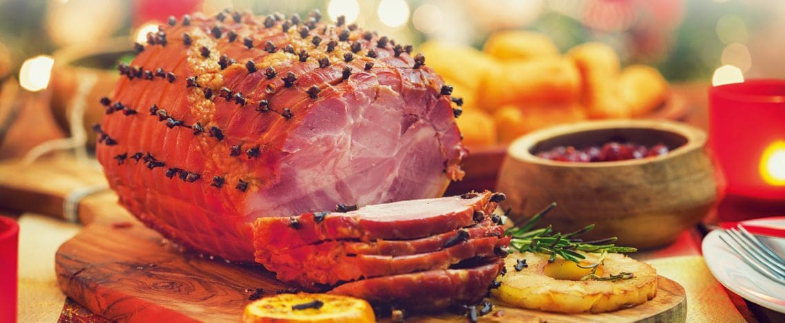 Sugar-baked ham Print Serves: 6-8 Ingredients 2 kg unsmoked boneless gammon joint 1 carrot, chopped 1 onion, chopped 1 leek, chopped 2 bay leaves approx 25 cloves for studding good handful dark soft brown sugar Method Soak gammon in cold water for 24 hours. Place in a large pan, thick skin down, and cover with cold water. Add carrot, onion, leek and bay leaves, place on a high heat and bring to a boil, then turn down to simmer … Continue reading Sugar-baked ham
